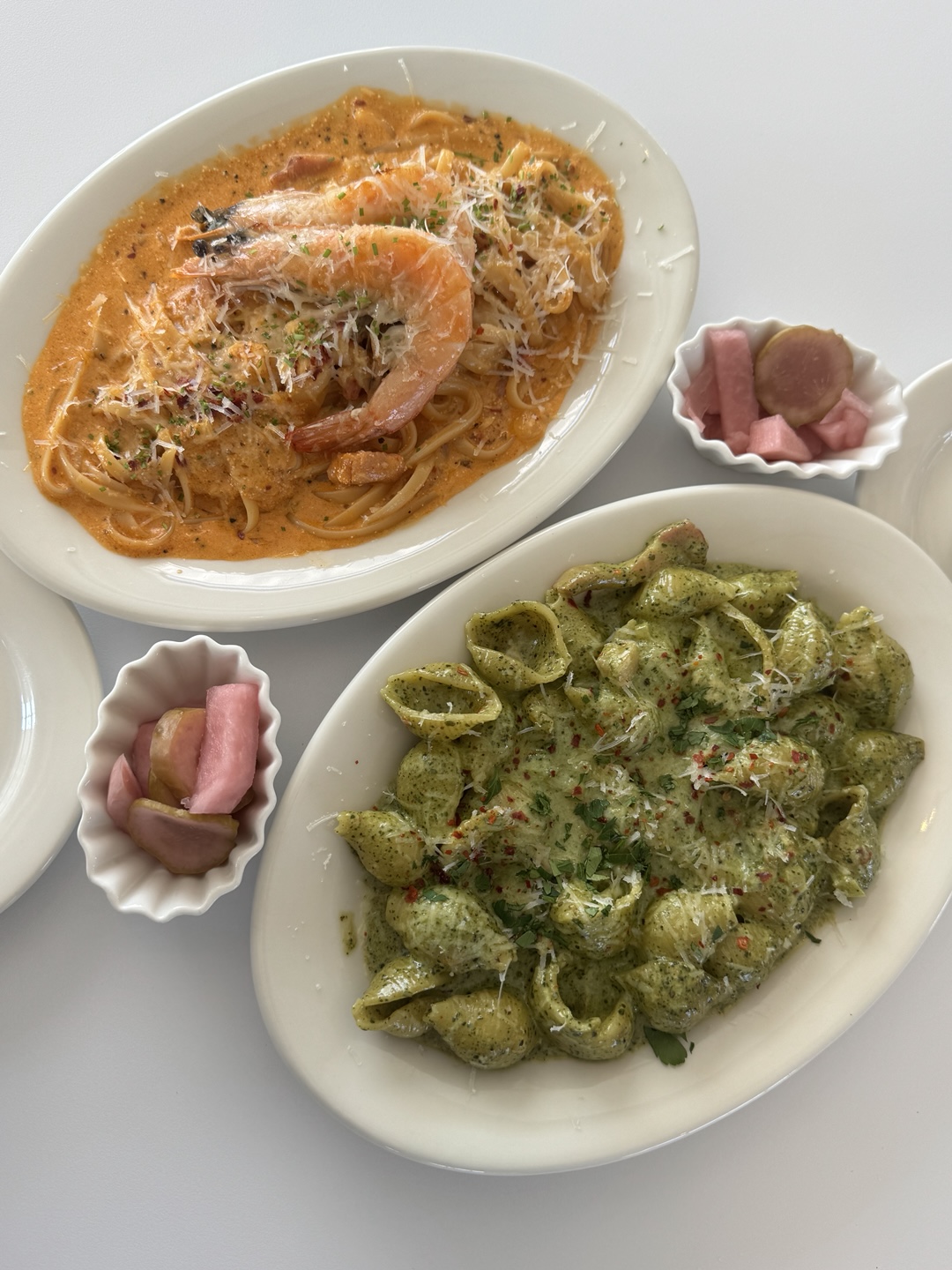 - 브런치도 판매하는데, 매콤한명란이파스타와 바질크림파스타가 아주 꿀맛이에요!!