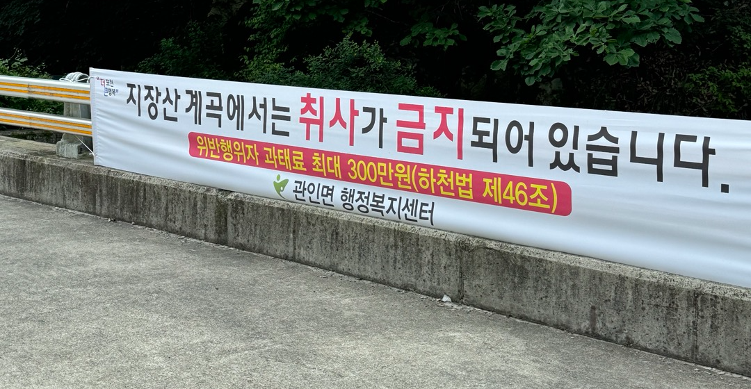 지장산 계곡에서는 취사가 금지되어 있습니다.