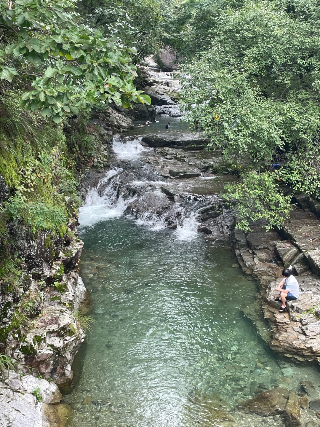수심 깊은 곳은 성인 남자 가슴? 정도입니다. 성인들 놀기 딱인 곳이에요. 나무가 우거져 있어서 지장산 계곡 다른 곳 보다 더 물이 차가웠어요. 물 속이 다 보일 정도로 물이 진짜 맑아요!
