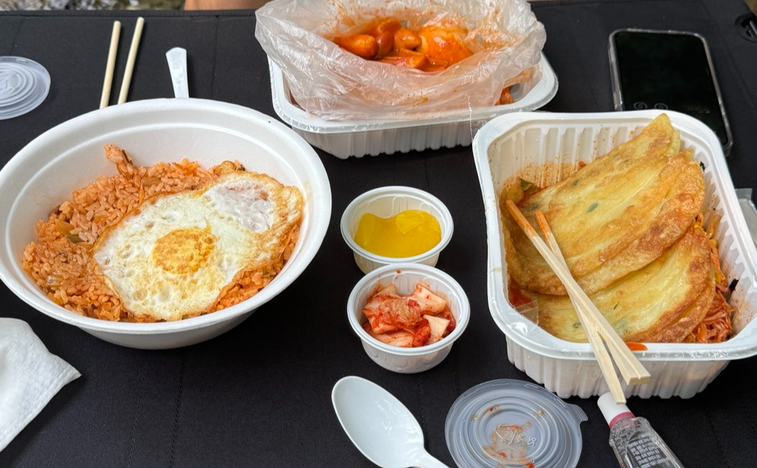 그래서 저희는 포천 시내? 쪽 분식집에서 떡볶이랑 이것저것 포장해서 가지고 갔습니다.